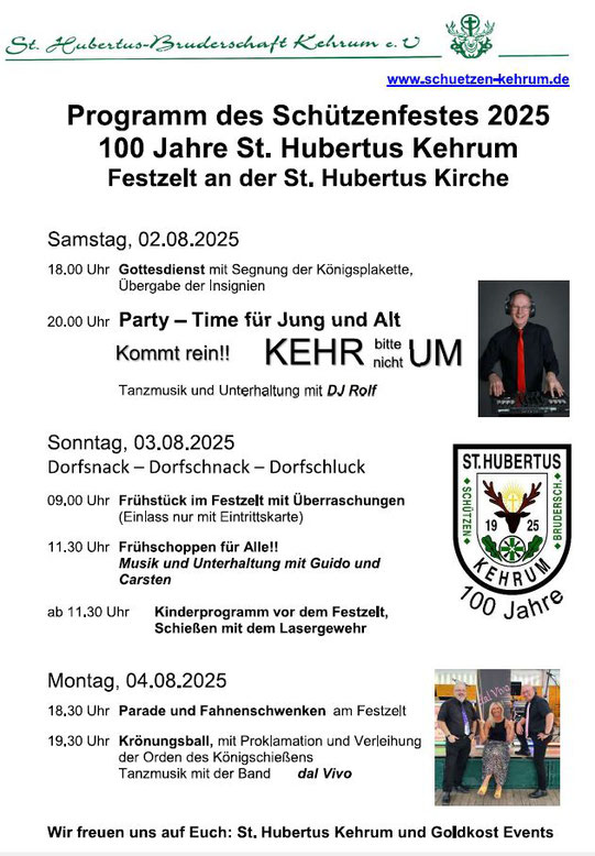 Müde aber glücklich blicken wir auf ein tolles Festwochenende in Kehrum zurück. Eine wilde Party am Samstag, ein gelungener Jubiläumsakt am Sonntag und ein festlicher Königsball am Montag. Andreas Winkels und Kyra de Lange sind ein stolzes Königspaar, Jannes Adams ist ein toller Jugendprinz, der ganze Thron hat für prächtige Stimmung gesorgt und selbst das Wetter spielte mit.
